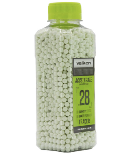 When you buy your time and money saving ACCELERATE BIO TRACER BBs 0.28g – 2500ct from us, you get a brand new package of airsoft BB’s, at the best possible price. Our innovative partnership with Valken allows us to ship directly from their warehouse, which cuts out the middle-man and eliminates the high operating costs of traditional brick and mortar big box stores. These savings get passed directly to you, allowing us to offer brand new, high performance Valken top rated airsoft ammunition at the best possible everyday cheap discount online sales prices. And buying from us is definitely better than direct. If you buy direct or at most other stores, you’ll have to pay higher shipping costs. Buying from us, however, you always get low flat rate or free ground shipping as our thanks to you for shopping with us.
