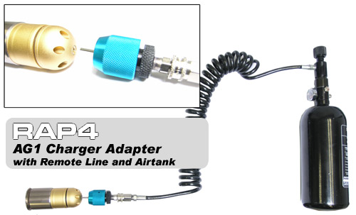 Simply connect the AG1 Charger in between your CO2 tank and grenade shell to transfer air into the grenade to charge it. The AG1 Charger works with the M203 or M68 grenade shells, as well as RAP4’s realistic landmines.