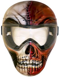 Disgust your friends and rule the paintball field with the Carnage mask! Half mummy, half flesh face… horrify your opponents! The OU812 Series mask comes with military grade anti fog, anti scratch thermal lenses, RWI foam (Replaceable, Washable & Interchangeable) AND a soft cloth bag to protect your mask when not in use.