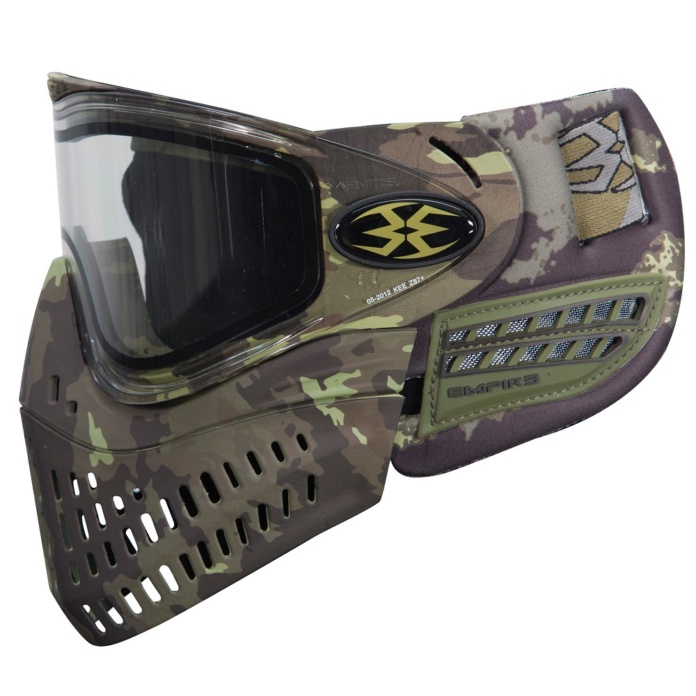 The best camouflage pattern in woodsball is the TerraPat2 pattern used in the Empire BT Professional pants and jerseys. Empire Paintball offers a matching e-Flex goggle with a skirt, frame and therm-formed ears all featuring the TerraPat2 coloring. This pattern is designed for maximum concealment in temperate environments and it made sense that your head should have the same covering. The goggles also has all the great features that make the e-Flex the choice of players everywhere. With the Pro gear and the e-Flex SE, the enemy will never know what hit them, literally.