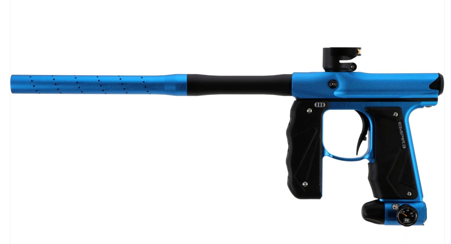 The Empire Mini™ GS is the next generation of a paintball marker legend. The team at Empire has taken the proven Mini marker platform and designed and developed it to be even better. In addition to the battle proven Mini engine the GS includes a full wrap-around rubber foregrip that creates a secure grip and protection from paint and the elements. The Mini GS also adds an On/Off ASA that eliminates any thread issues and makes for smooth removal of your tank.