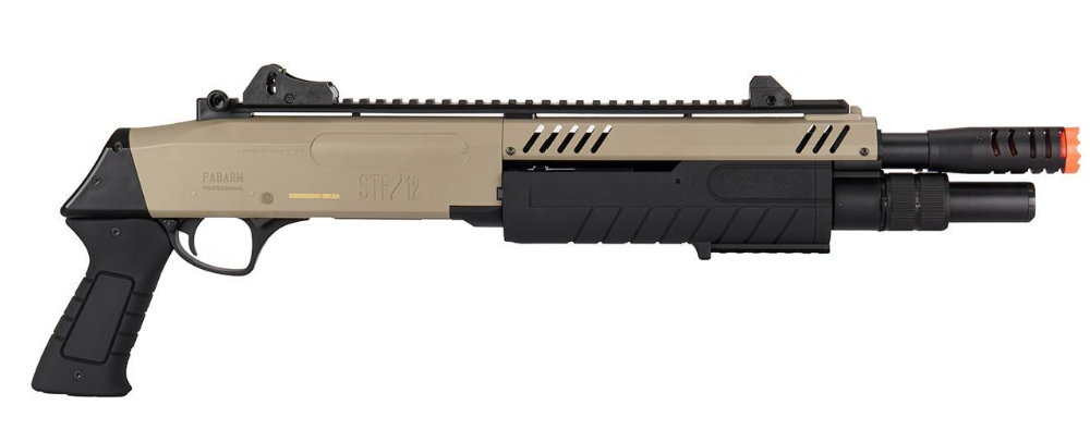 Crucially, this airsoft shotgun offers high utility due to its broad Magazine Compatibility, fitting standard Tokyo Marui airsoft shotgun shell magazines. Finished in a tactical Tan/Black two-tone color, the FABARM STF/12 provides a unique aesthetic combined with the rugged dependability expected from officially licensed products. For a reliable, powerful, and maneuverable close-range weapon, this Fabarm/BO Manufacture airsoft shotgun is a top contender.
