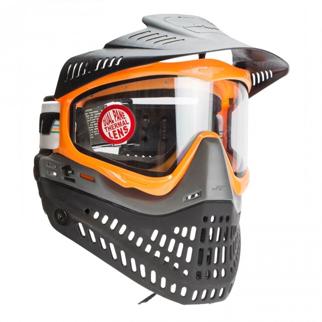 ProFlex™ paintball facemask and goggle systems are built for the professional and are hands down “the most comfortable protective face mask and eye goggle system in the world.” Built on a timeless design, the top rated and affordable ProFlex™ paintball goggles provides superior face protection using JT’s unique insert molding technology giving the player a rigid upper for maximum eye protection, while offering a soft flexible lower mandible that allows the player to conform and move easily. Unrivaled soft ears and a removable visor are also standard on all ProFlex™ models. The protective and cool JT Spectra ProFlex LE Thermal Orange Paintball Goggles and Black Facemask are on sale here at our paintball gear and supplies store at the best possible cheap discount online sales price.