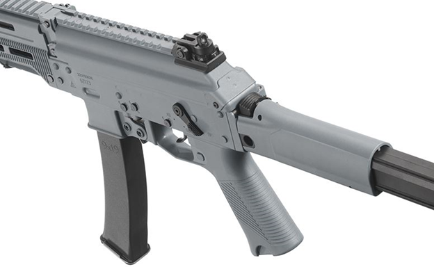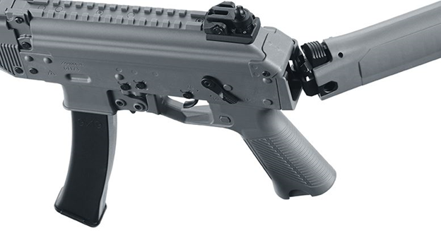 - Ergonomic pistol grip with built-in enlarged trigger guard – Comfortable angle, easy access to the trigger
