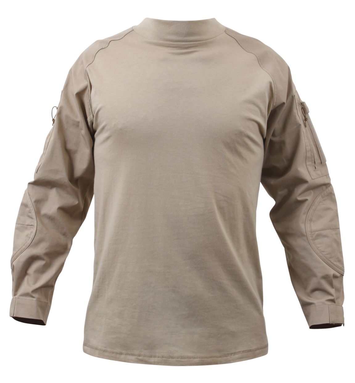 Discover Rothco’s innovative Combat Shirt, crafted for comfort yet designed for protection. Engineered from a no-melt, drip-resistant fabric, it withstands temperatures up to 230 degrees Fahrenheit on the chest and back. The lightweight, breathable material efficiently wicks moisture away, ensuring you stay dry. Nylon cotton rip-stop sleeves enhance durability, complemented by anti-abrasion padded elbow patches and gusseted sleeves for optimal action. The glint tape holder and loop field on sleeve pockets facilitate customization with name, rank, and flag patches. Ideal for military and tactical use, especially under heavy body armor, it features hook & loop adjustable cuffs and a mock turtle neck design for a secure fit.