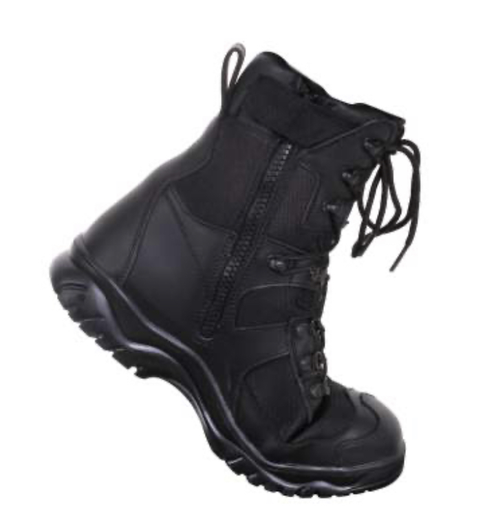 Rothco’s V-Motion Flex Tactical Boot offers next level mobility and agility. Nylon runs from side to side, over the top of the toe allowing for out of the box flexibility. The 8″ tactical boot features an eight eyelet lace system with four speedlaces for fast lacing and a side zipper for a quick and easy fit. For added comfort, the V-Motion boot is equipped with a removable cushioned sole.
