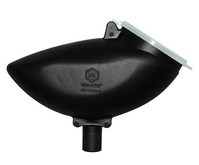 Compatible with Spyder .50 Cal markers. Holds up to 350 .50 cal paintballs. Gravity fed loader.