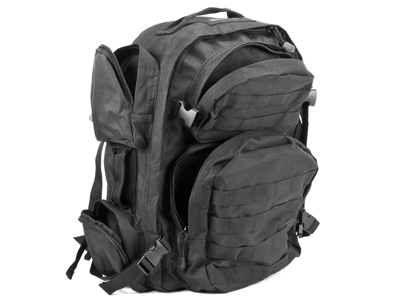The Tactical Back Pack has a huge main compartment (18″H x 12″W x 6″D) and two side compartments. There is also a flat, rear compartment designed to house a hydration bladder; however the is not included with this product.