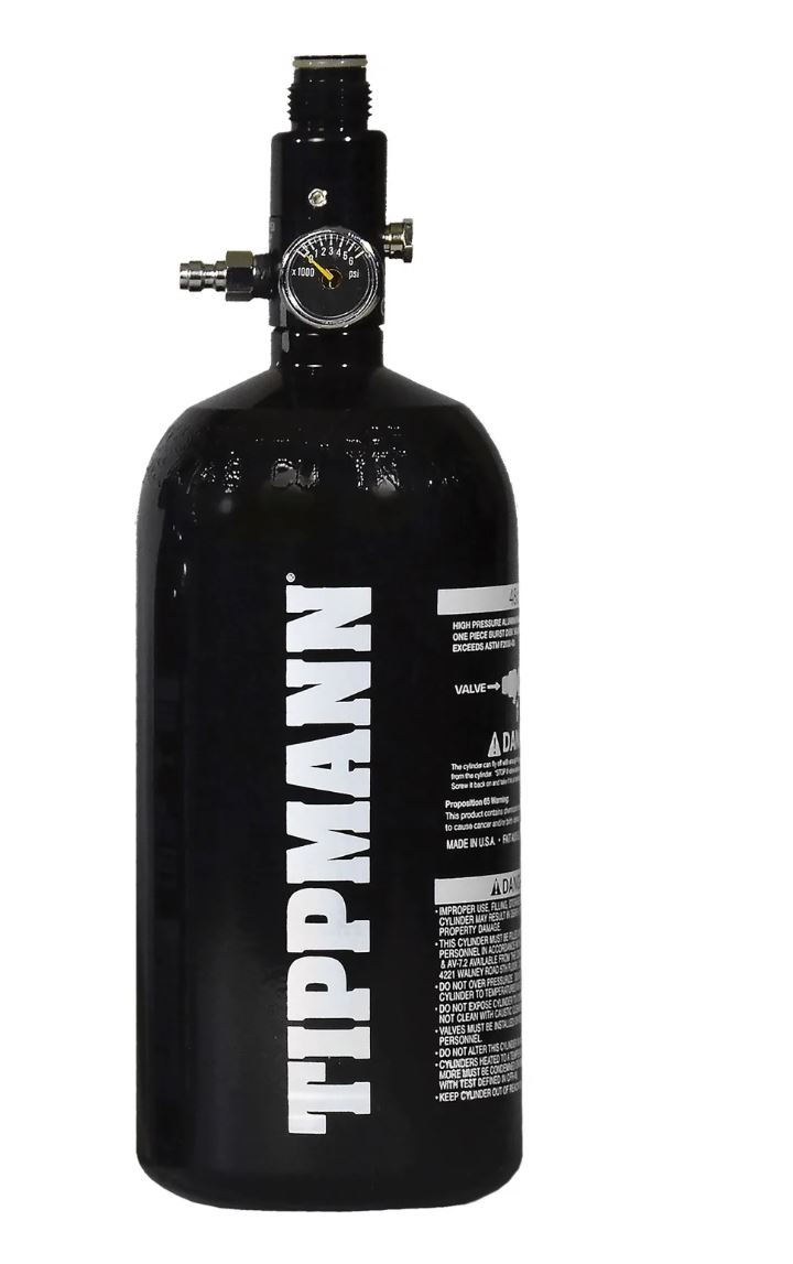 This Tippman brand 48ci 3000 psi flat bottom HPA Cylinder with regulator is excellent for a personal tank but sturdy enough to last as a rental if you own a field. Unlike round bottom HPA tanks, this one has a flat bottom so it will sit securely on shelves when stocking and pack easily when shipping. This HPA tank is also cheaper than many similar HPA tanks for sale online.