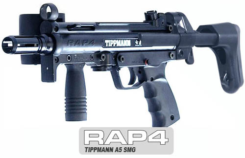 Tippmann A5 Compact Sub Machine Gun Tactical Paintball Marker Brings Speed, Accuracy and Power to your Game! This A5 military replica SMG paintball gun package includes retractable stock & short, 3” barrel for the ultimate realistic scenario look at cheap price.