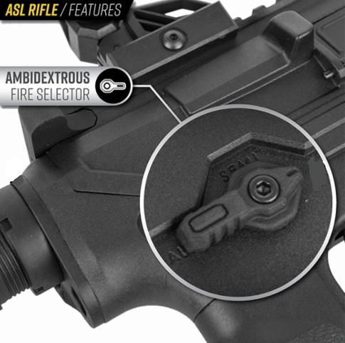 The Valken ASL MOD-L electric gun also comes with an ambidextrous magazine release and selector lever to accommodate offhand manipulation, or left handed users, as well as a rotary hop-up unit for improved accuracy.