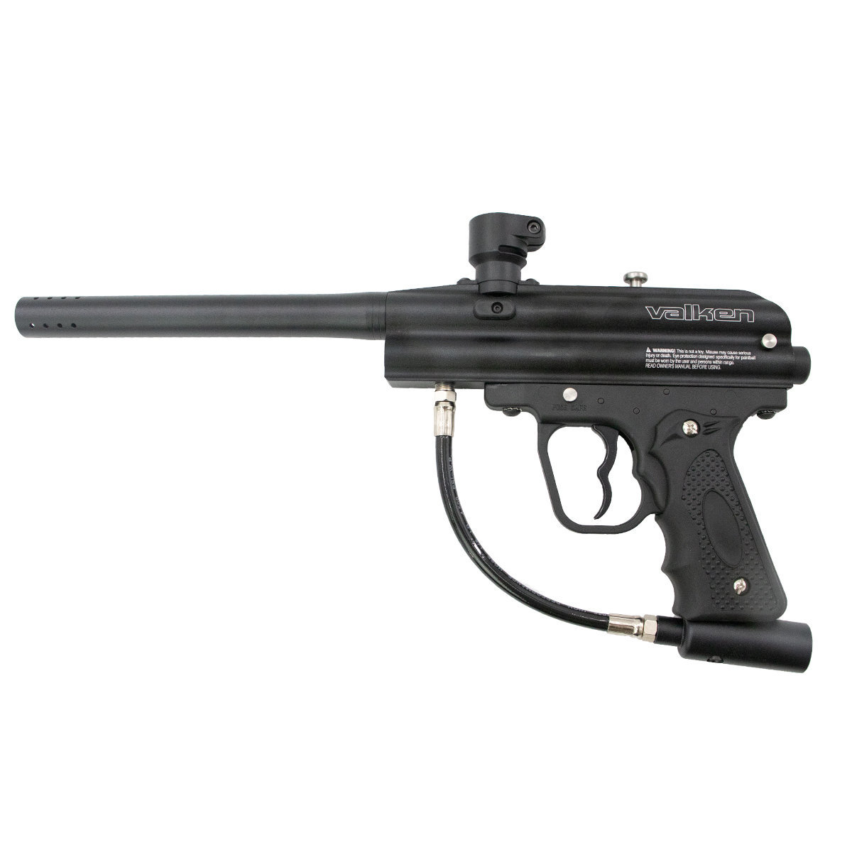 The beating heart of the Razorback paintball gun includes a quick-pull Delrin self-lubricating bolt for reduced maintenance and quick cleaning, premium o-rings for extended service life and a patent-pending Self-Centering cup seal to improve consistency, reliability and all-around performance! Other standard features of the Valken Razorback include a clamping, vertical feed neck to hold on to any hopper, a double trigger for increased rates of fire, a ported aluminum barrel, simple rear velocity adjuster, a bottom line bottle adapter and the ability to function efficiently on CO2 or compressed air! For affordable paintball gun firepower, don’t settle for a plastic paintball gun when you can enjoy the trustworthy performance and rugged reliability of the Valken Razorback!